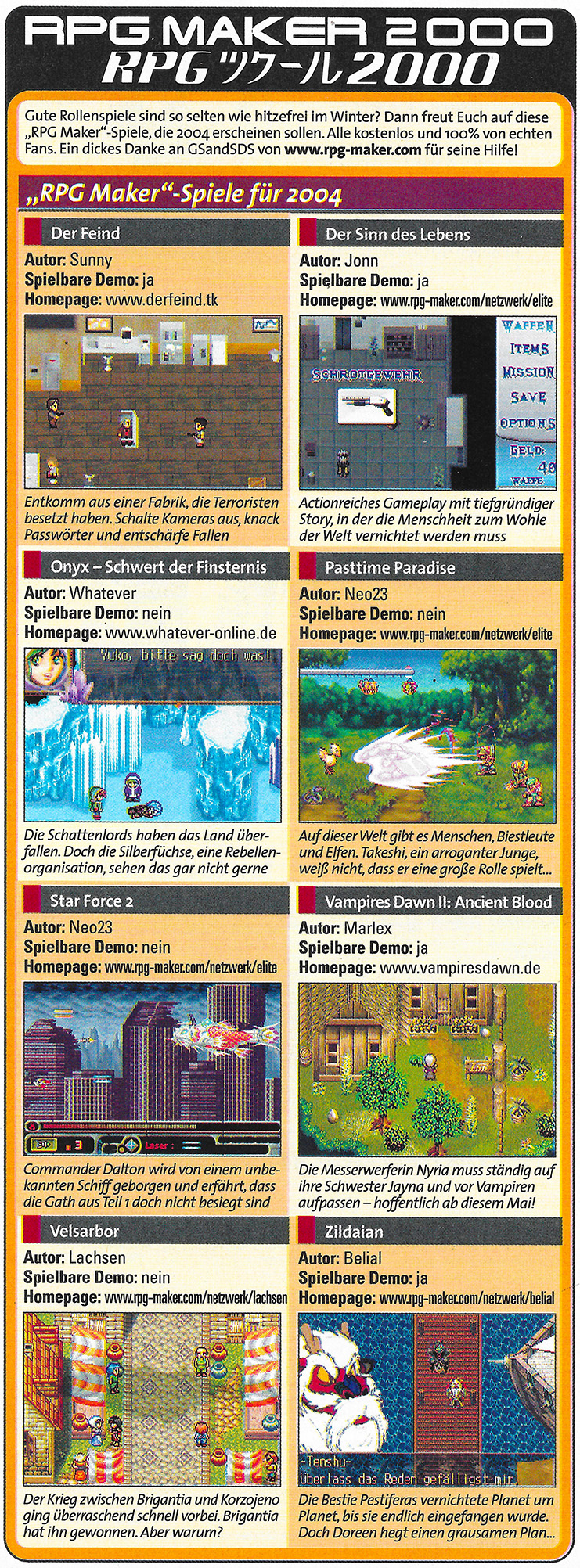 | 12:34, 11. Aug. 2025 | Screenfun MakerNews 200605 p12.jpg (Datei) | 453 KB | BRAVO Screenfun (News-Sektion) Mai-2006-Ausgabe, Seite 12 | 1 | |
