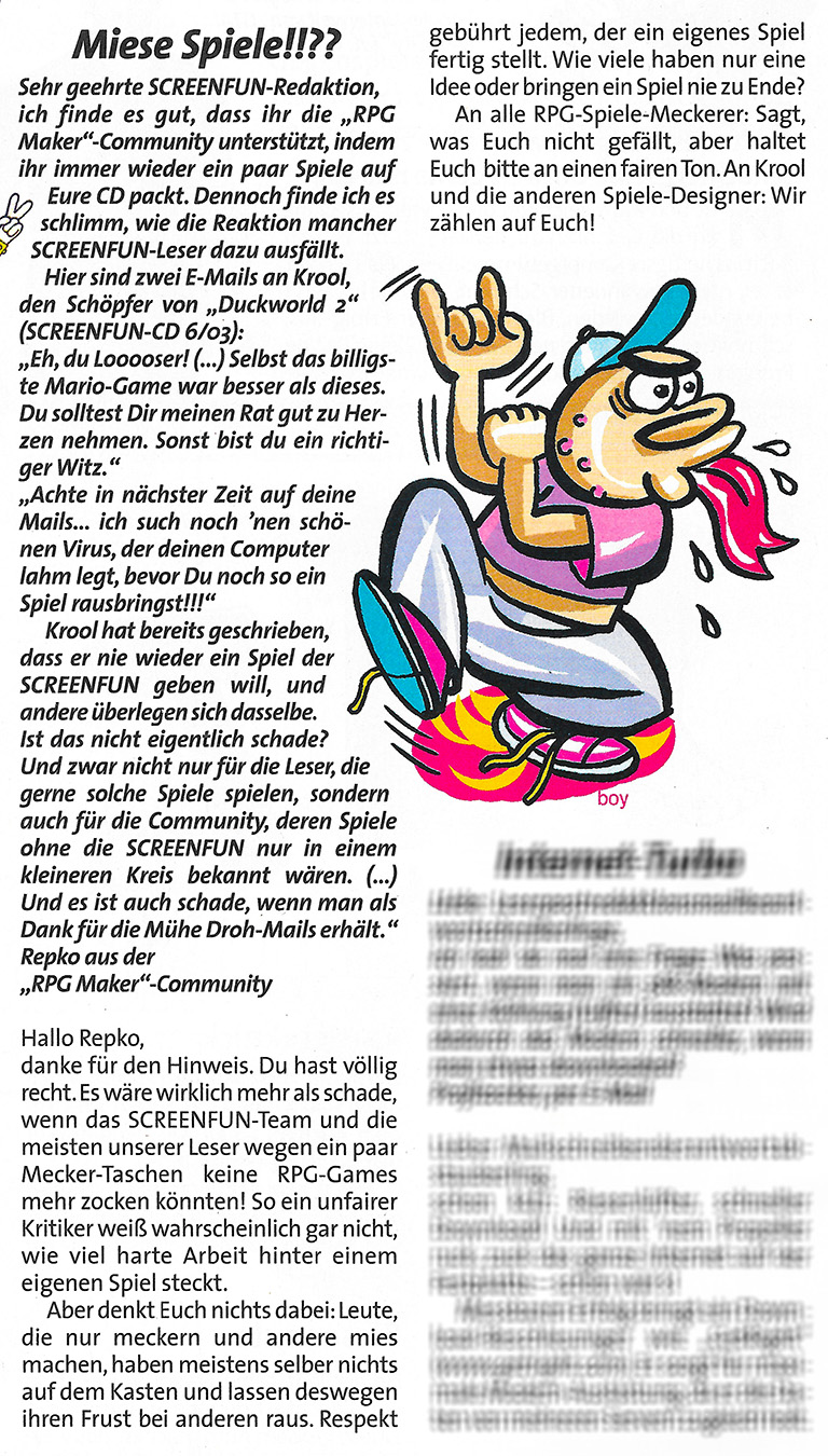 | 12:05, 5. Aug. 2025 | Screenfun Leserbrief 200403 p111.jpg (Datei) | 1,19 MB | BRAVO Screenfun (Sektion Leserbriefe) März-2004-Ausgabe, Seite 111 | 1 | |